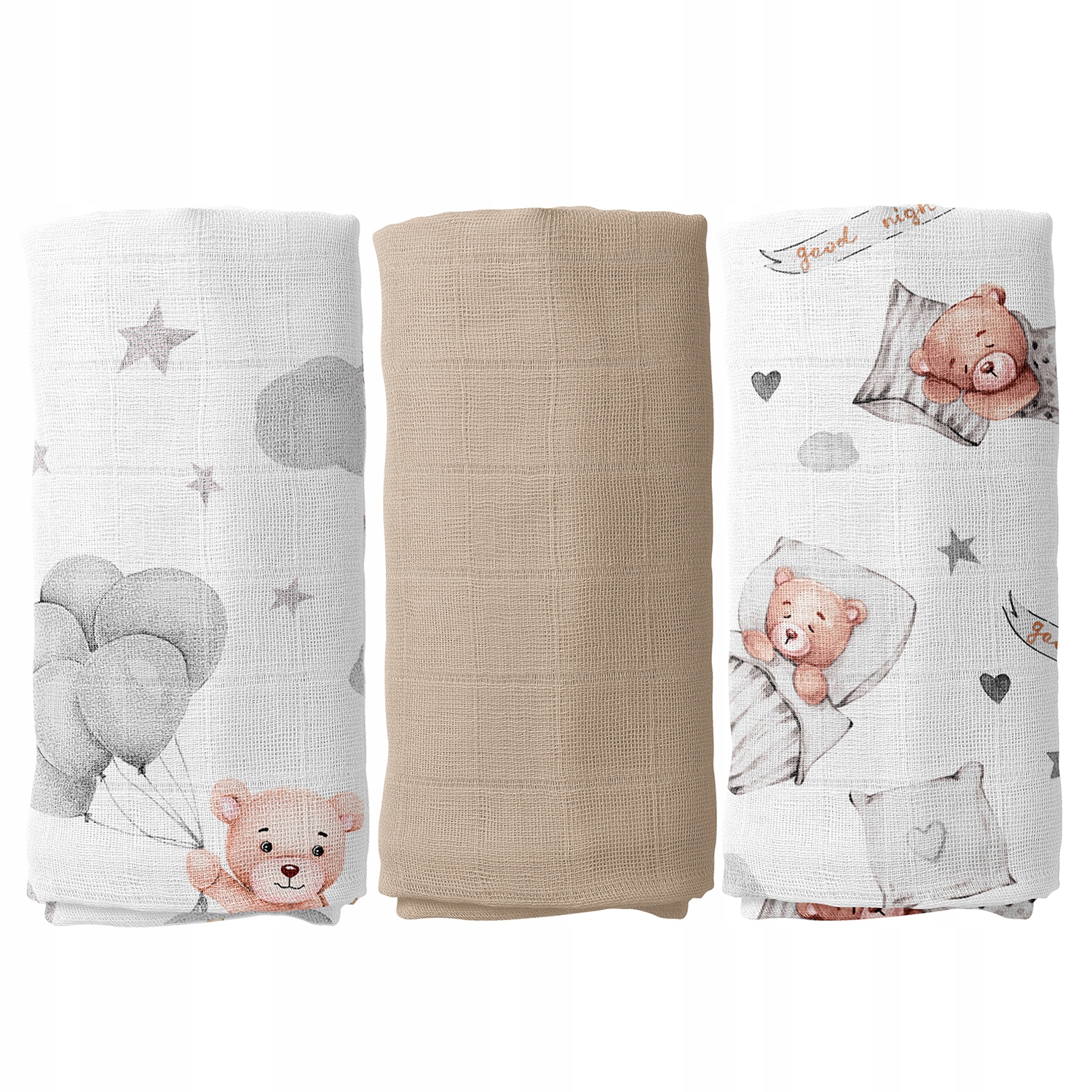 Zestaw 3 muślinowych pieluszek 60×75 cm – 100% bawełna 🌿