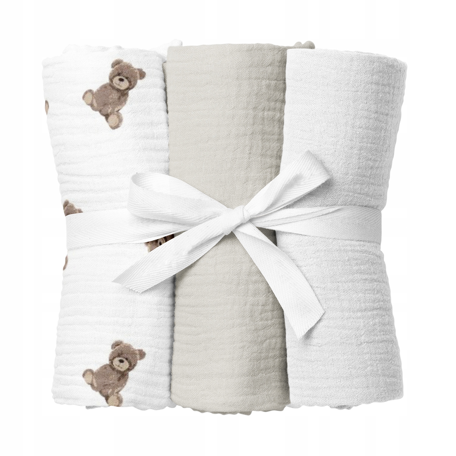 Zestaw 3 pieluszek muślinowych Teddy beż i biel al