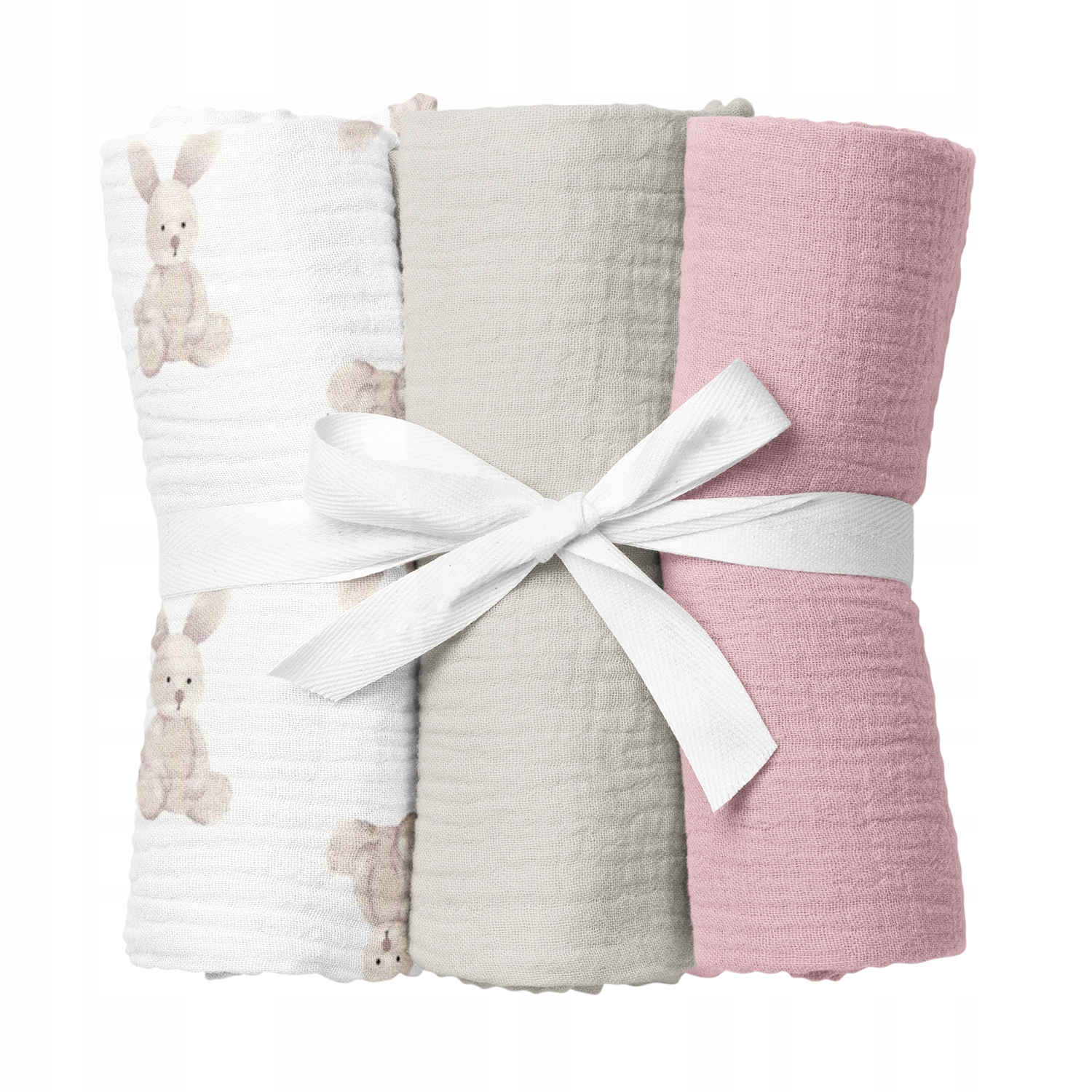 Zestaw 3 pieluszek muślinowych Zajączki beż i róż al