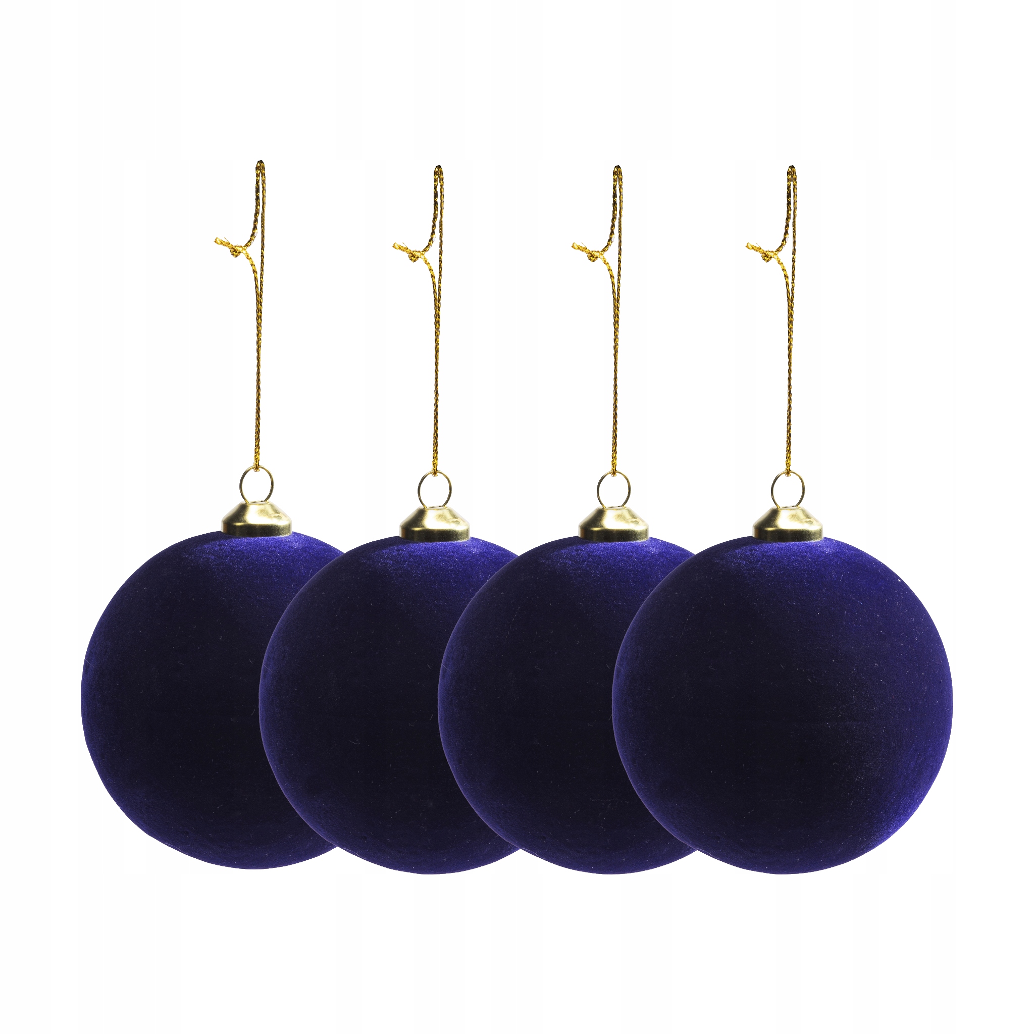 Ozdób drzewko ładnymi bombkami pokrytymi granatowym aksamitem i stwórz stylową choinkę! Bombki pasują równie dobrze do zawieszenia w oknie za pomocą długiej tasiemki. jak i jako dekoracja gałązek świerka w wazonie. W zestawie ze złotymi pętelkami do estetycznego zawieszenia