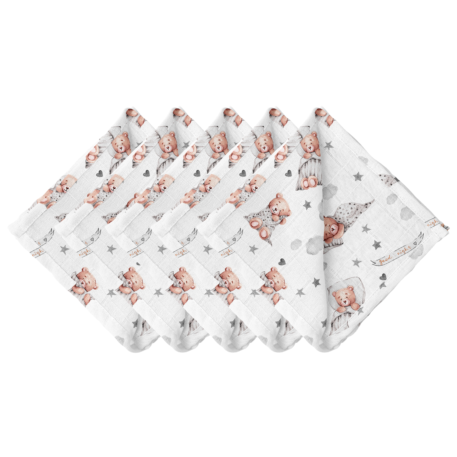 Zestaw 5 pieluszek muślinowych ulewajek Miś śpioch al