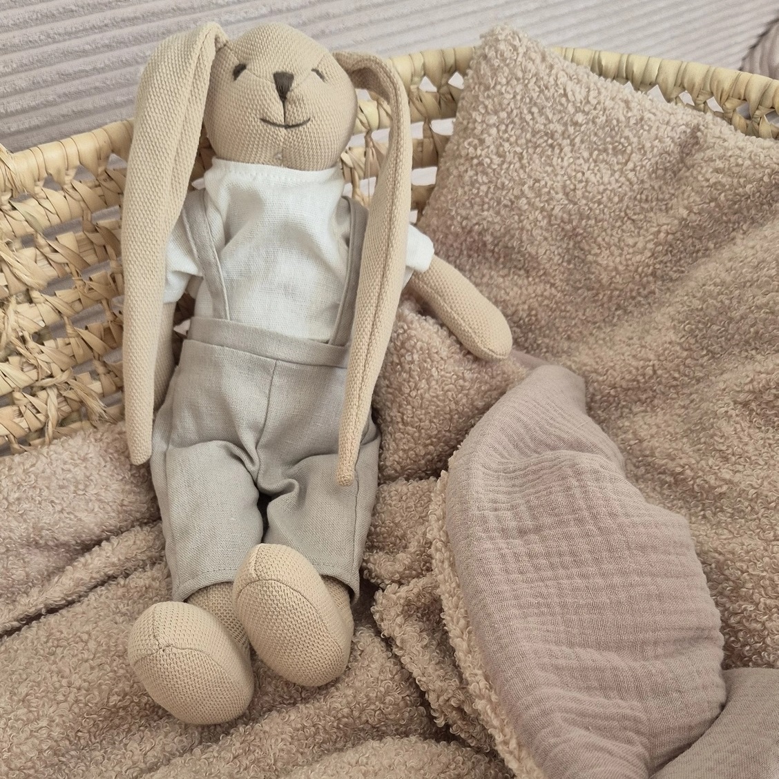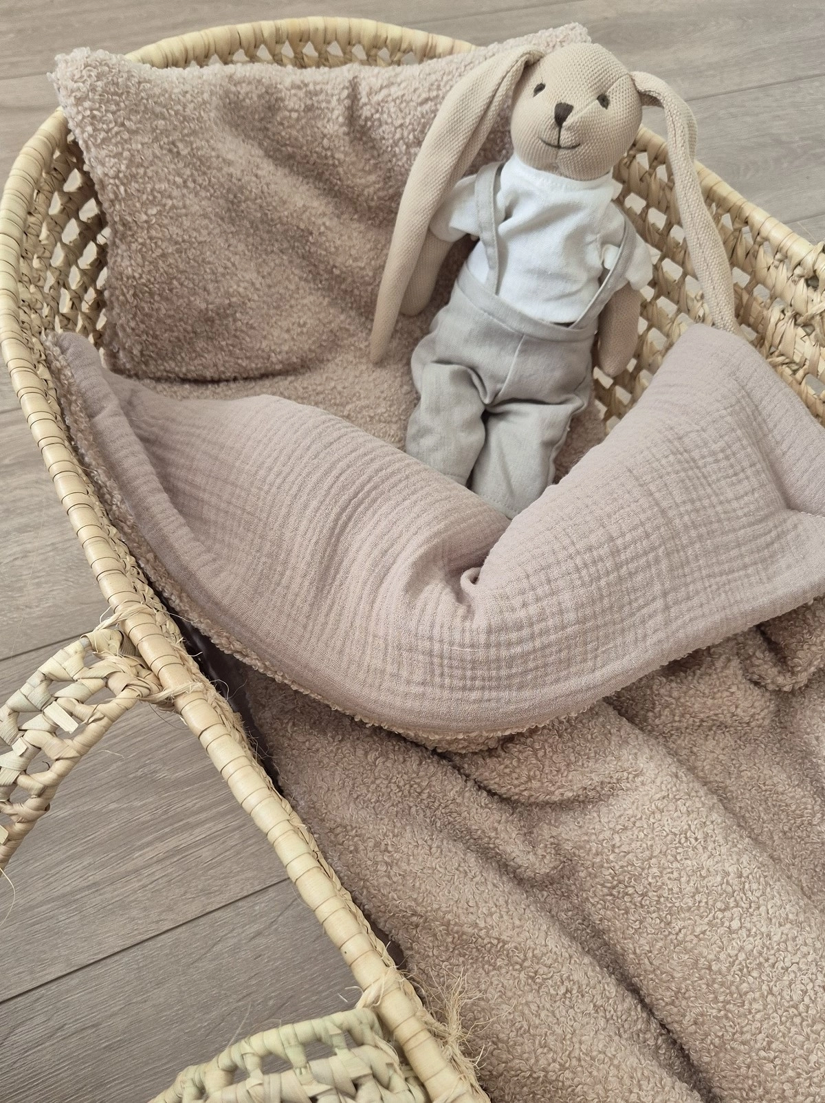 - Obszycie: I strona baranek 100% poliester/II strona muślin 100% bawełna