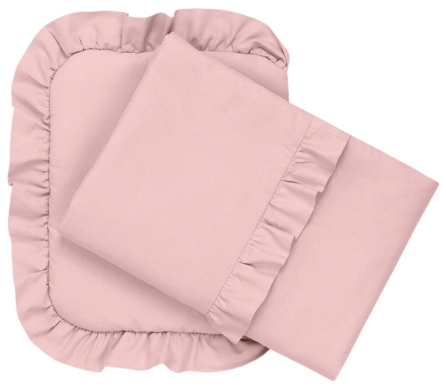 Zestaw kocyk + poduszka bawełniany z falbanką Brudny Róż IF