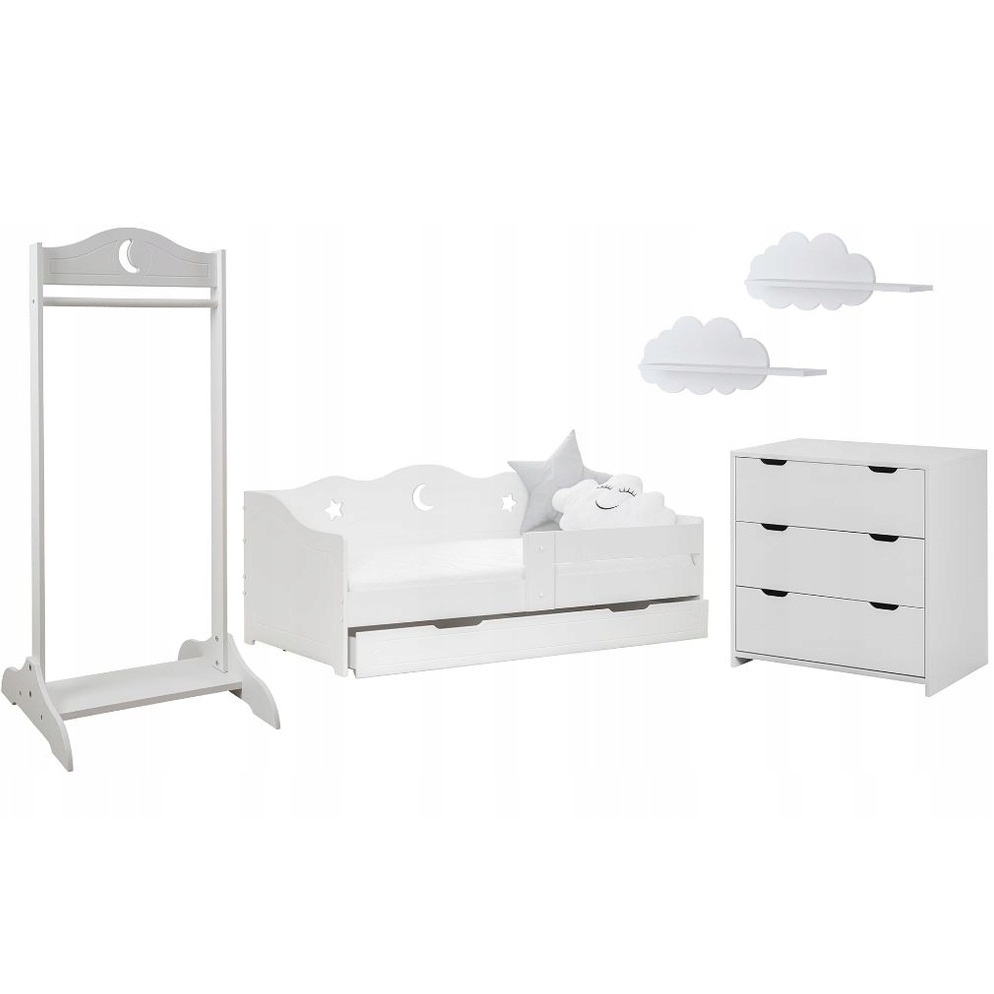 Zestaw mebli dziecięcych łóżko komoda półki wieszak biel BR