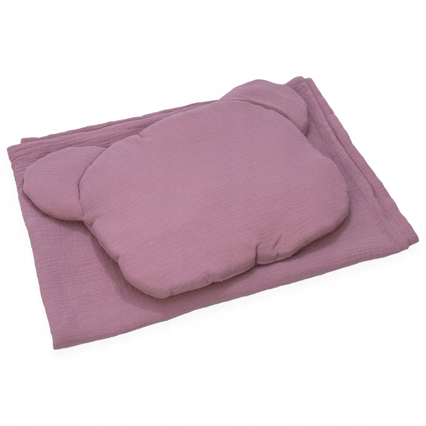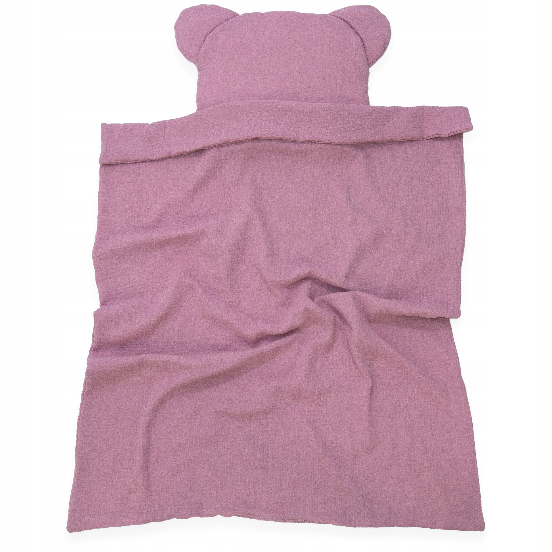 Zestaw muślinowy poduszka miś + otulacz brudny róż 75×100 cm als
