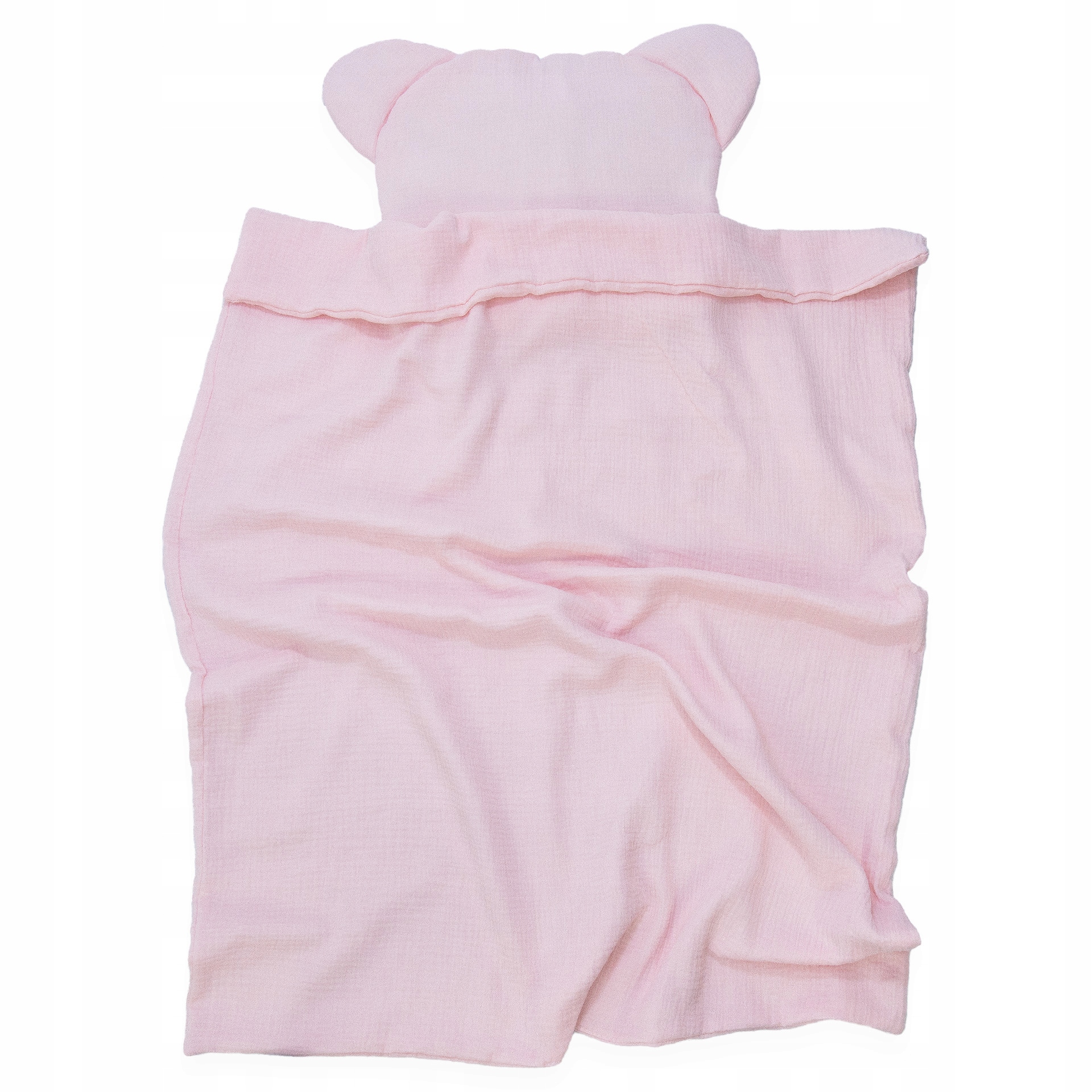 Zestaw muślinowy poduszka miś + otulacz pudrowy róż 75×100 cm als