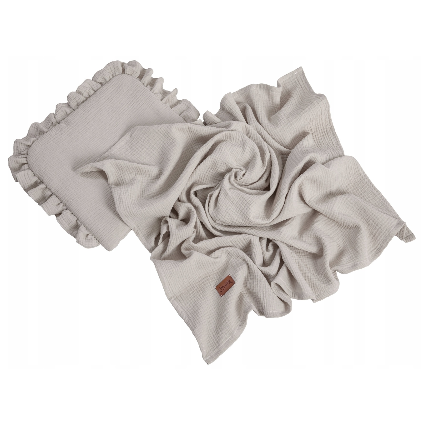 Zestaw muślinowy poduszka z falbanką + otulacz beż BR