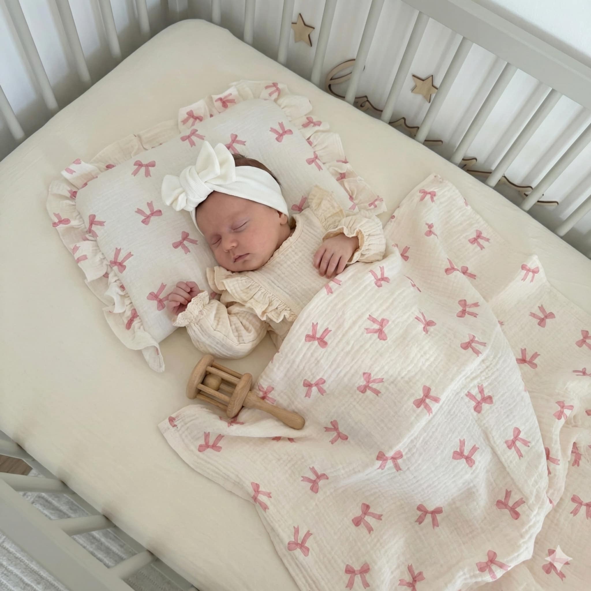 Zestaw Muślinowy: Poduszka z Falbanką + Lekki Otulacz/Kocyk