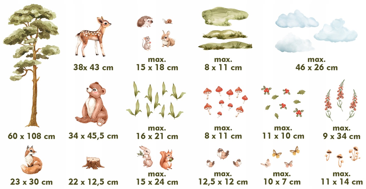 Zestaw naklejek ściennych XL Leśne Zwierzęta als