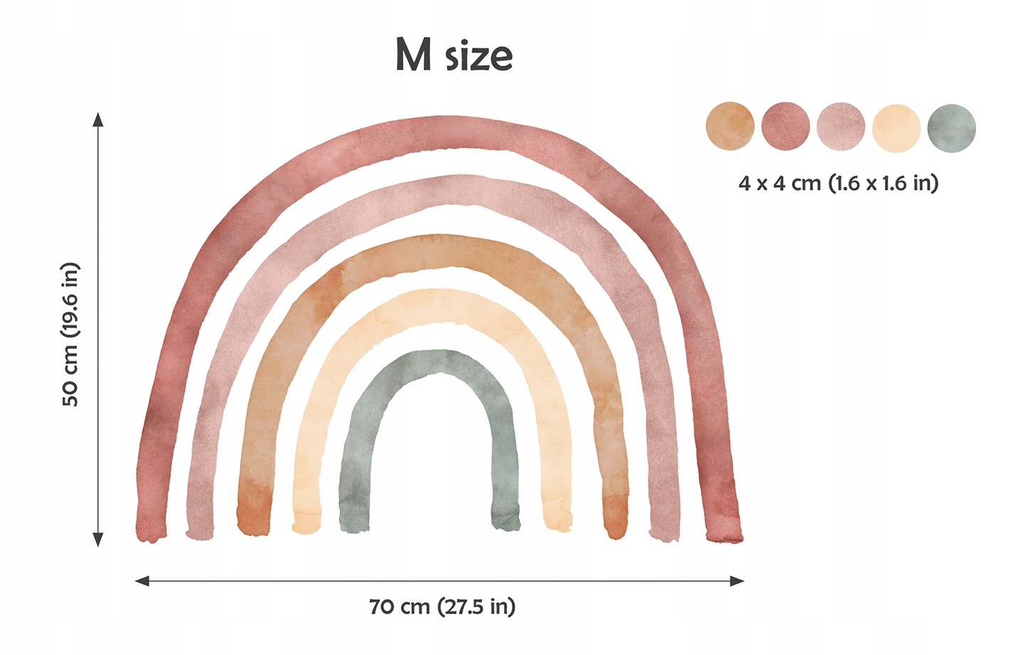 Naklejka tęcza w rozmiarze 50 cm x 70 + 50 naklejek kropek, każde w rozmiarze 4 cm x 4 cm