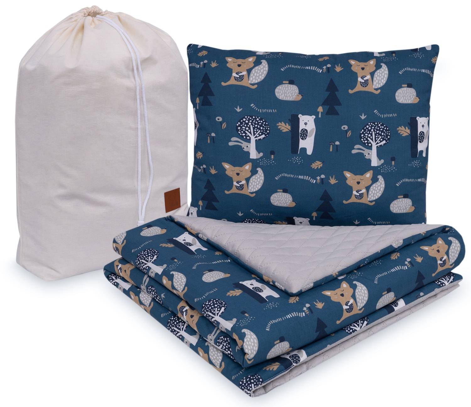 • Poduszka (40×50 cm) – lekko wypełniona, by zapewnić wygodę bez nadmiernego uniesienia główki.