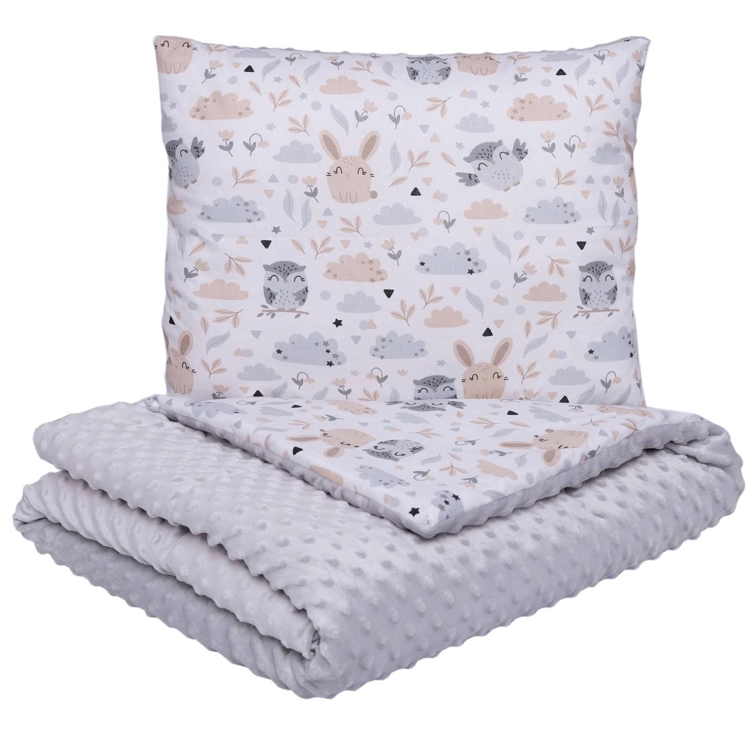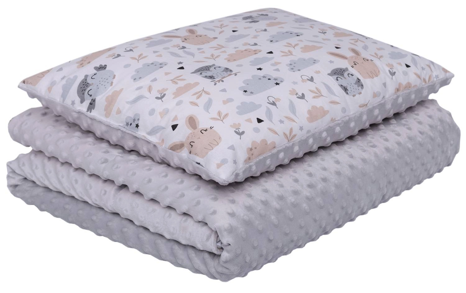 Nasz komplet pościelowy to idealne połączenie elegancji, funkcjonalności i bezpieczeństwa. Składa się z dużego, mięciutkiego kocyka oraz puchatej poduszki, które razem stworzą przytulne miejsce do snu i odpoczynku dla Twojego maluszka.