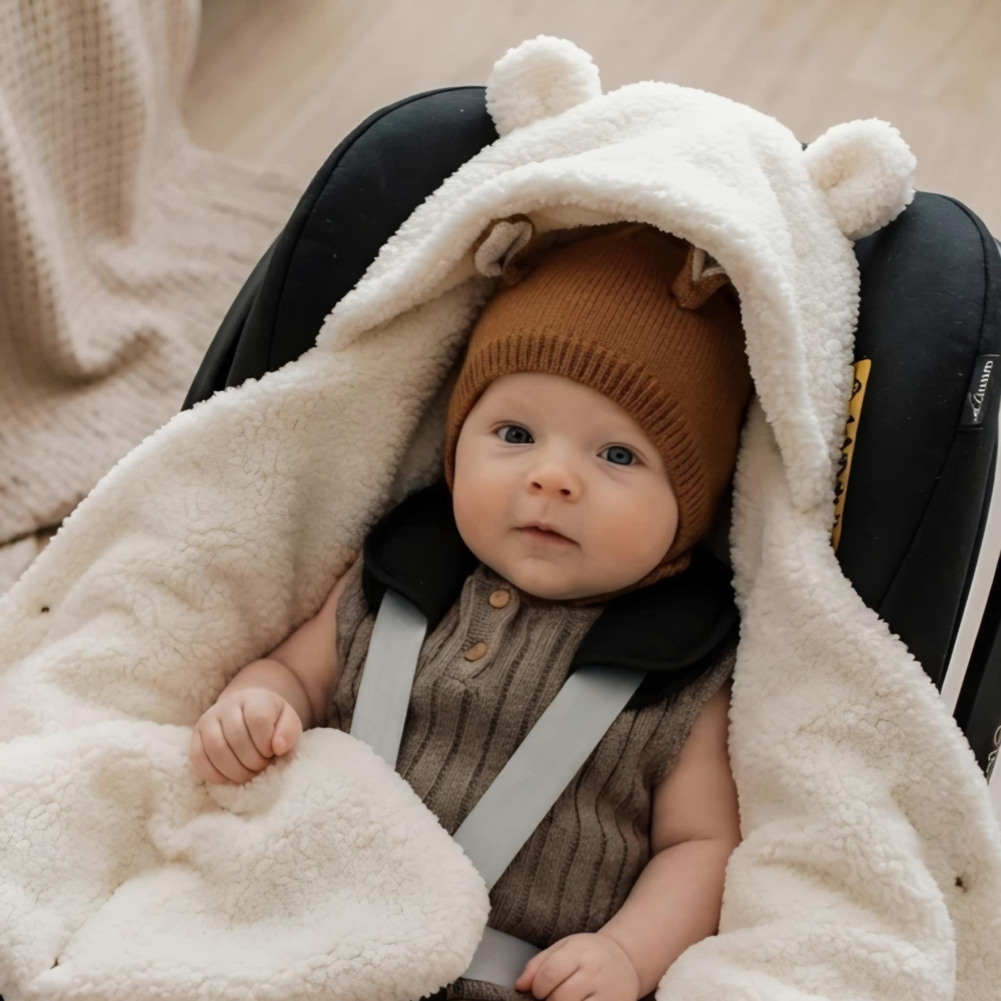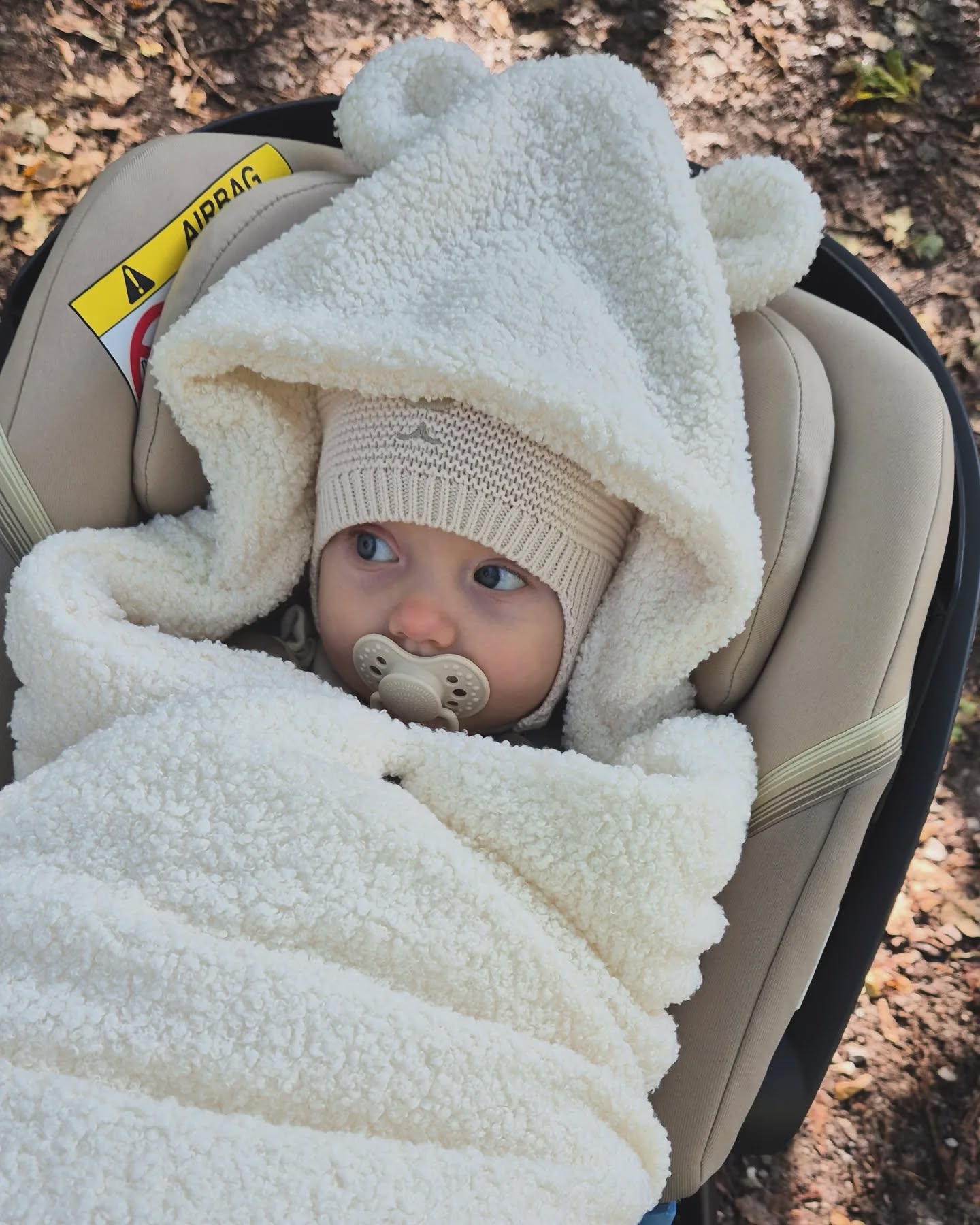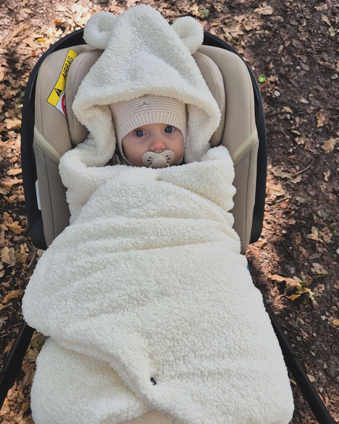 Bądź pierwszym, który oceni “Zimowy otulacz do fotelika z uszkami premium boucle ecru IF”
